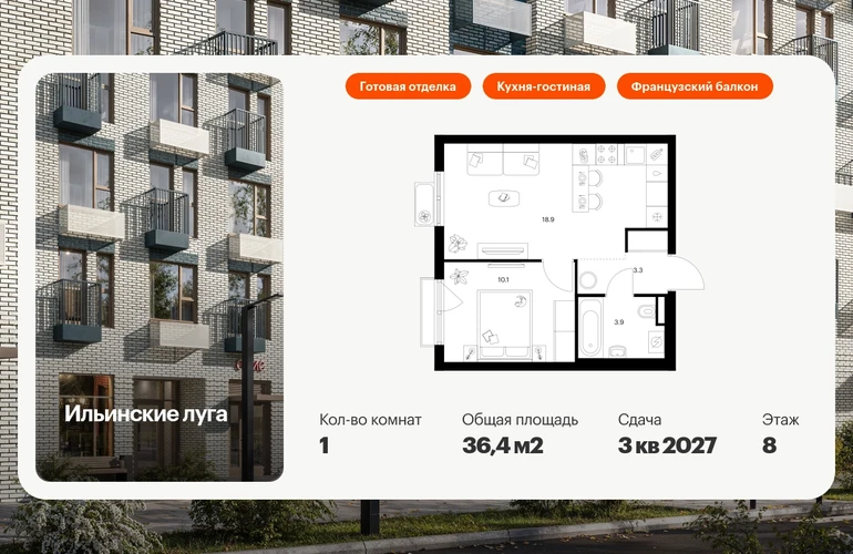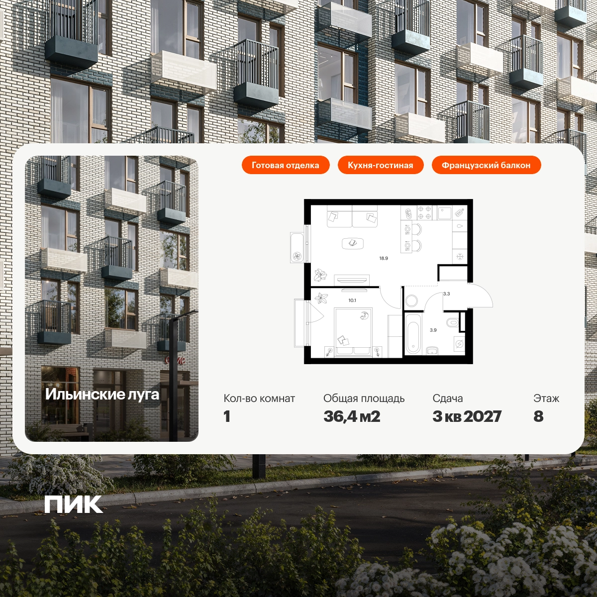 Продаётся 1-комн.квартира площадью 36.40 кв.м на 8 этаже 9 этажного дома (Корпус 3.1, секция 2) проекта ПИК Ильинские луга. Светлый просторный подъезд на уровне земли, функциональная планировка, большие окна, с отделкой. Жилой район «Ильинские луга» находится в 10 километрах от МКАД по Новорижскому шоссе, в 20 минутах на автомобиле от станций метро «Волоколамская», «Тушинская» и «Строгино». В будущем ближе к проекту, в 9 минутах пути на машине, откроется станция «Ильинская» Рублёво-Архангельской линии, которая будет соединять Арбатско-Покровскую линию и Большую кольцевую линию. «Ильинские луга» — масштабный проект, в который входит девять детских садов, четыре школы и поликлиника. Он строится в престижном и экологичном районе среди лесов и памятников природы. За 5 минут от жилого квартала можно доехать до Рублёво-Успенского шоссе, а за 30 минут — до центра Москвы. До крупного торгового центра «РИГАМОЛЛ» всего 5 минут на автомобиле, а до ТЦ «Твой дом» и гипермаркета «Глобус» — 10 минут. В «Ильинских лугах» строятся только девятиэтажные дома — такая архитектура соответствует спокойной жизни за городом. В каждом дворе-парке есть места для отдыха, детские и спортивные площадки. А ещё, здесь уже открыт большой PlayHub «Гравити» — современное игровое пространство с космической тематикой, холмами, зонами для игр и отдыха жителей любого возраста. На первых этажах уже работают магазины, кафе и пекарни. Места для отдыха от «Ильинских лугов» тоже недалеко: 10 минут на машине — и вы в музее-усадьбе «Архангельское». Также рядом находится Лохин остров — памятник природы, где водятся речные черепахи, есть места для кемпинга и возможность сплавиться по реке. Артикул - 1001579О застройщике