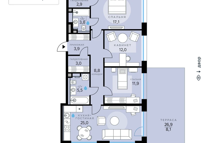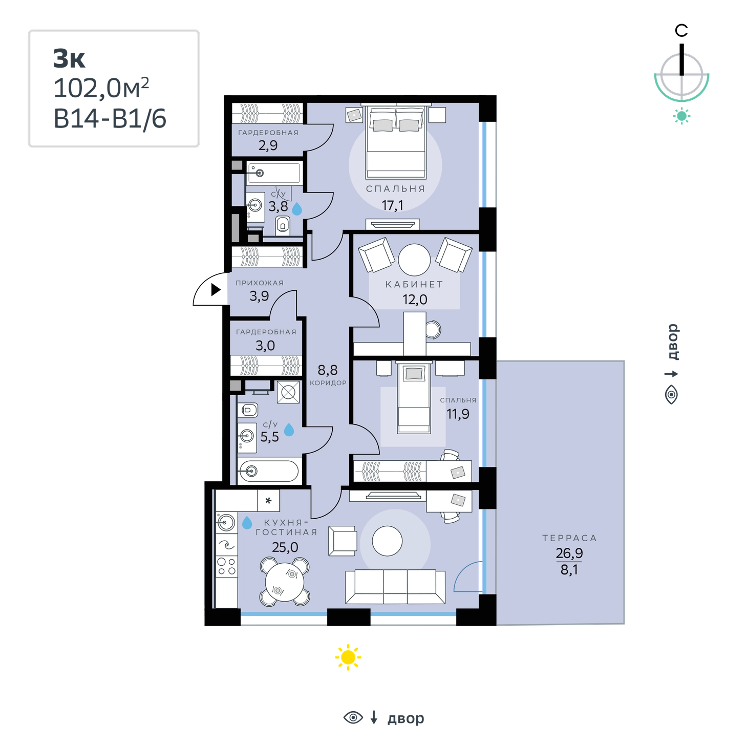 В продаже 3к квартира с чистовой отделкой общей площадью 102 кв. м. Квартира расположена на 1 этаже 10-этажной секции корпуса Balanced в новом Рублёво-Архангельском районе Москвы, который строит Сбер.В архитектуре квартала, разработанной итальянским бюро, нашла отражение природная палитра. Для двух корпусов выбраны небесно-голубой и травянистый зелёный оттенки фасадов. Яркими акцентами служат декоративные металлические рамы окон и эркеров. Наслаждайтесь пейзажем и невероятными закатами из окон, встречайте рассветы на уютных лоджиях и балконах, устраивайте чаепития с соседями на общественных террасах. Выходите на пробежку или просто гуляйте рядом с кварталом: В14 примыкает к главному парку СберСити, а до набережной — 3 минуты пешком. В квартале — уютные дворы без машин с обилием крупномерных растений и кустарников, многолетних и сезонных цветов, детские площадки и тихие зоны отдыха.