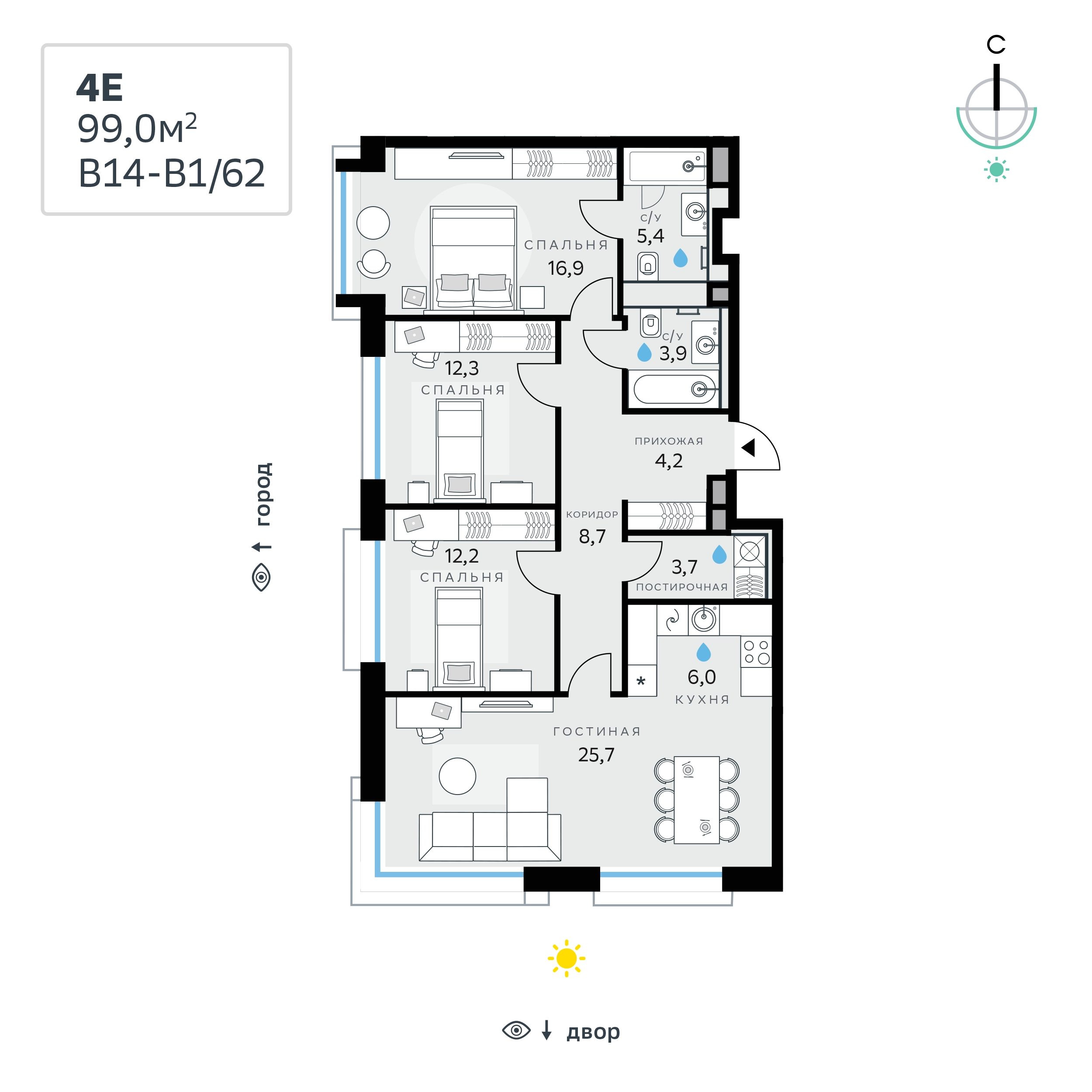 В продаже 4к квартира с чистовой отделкой общей площадью 99 кв. м. Квартира расположена на 8 этаже 10-этажной секции корпуса Balanced в новом Рублёво-Архангельском районе Москвы, который строит Сбер.В архитектуре квартала, разработанной итальянским бюро, нашла отражение природная палитра. Для двух корпусов выбраны небесно-голубой и травянистый зелёный оттенки фасадов. Яркими акцентами служат декоративные металлические рамы окон и эркеров. Наслаждайтесь пейзажем и невероятными закатами из окон, встречайте рассветы на уютных лоджиях и балконах, устраивайте чаепития с соседями на общественных террасах. Выходите на пробежку или просто гуляйте рядом с кварталом: В14 примыкает к главному парку СберСити, а до набережной — 3 минуты пешком. В квартале — уютные дворы без машин с обилием крупномерных растений и кустарников, многолетних и сезонных цветов, детские площадки и тихие зоны отдыха.