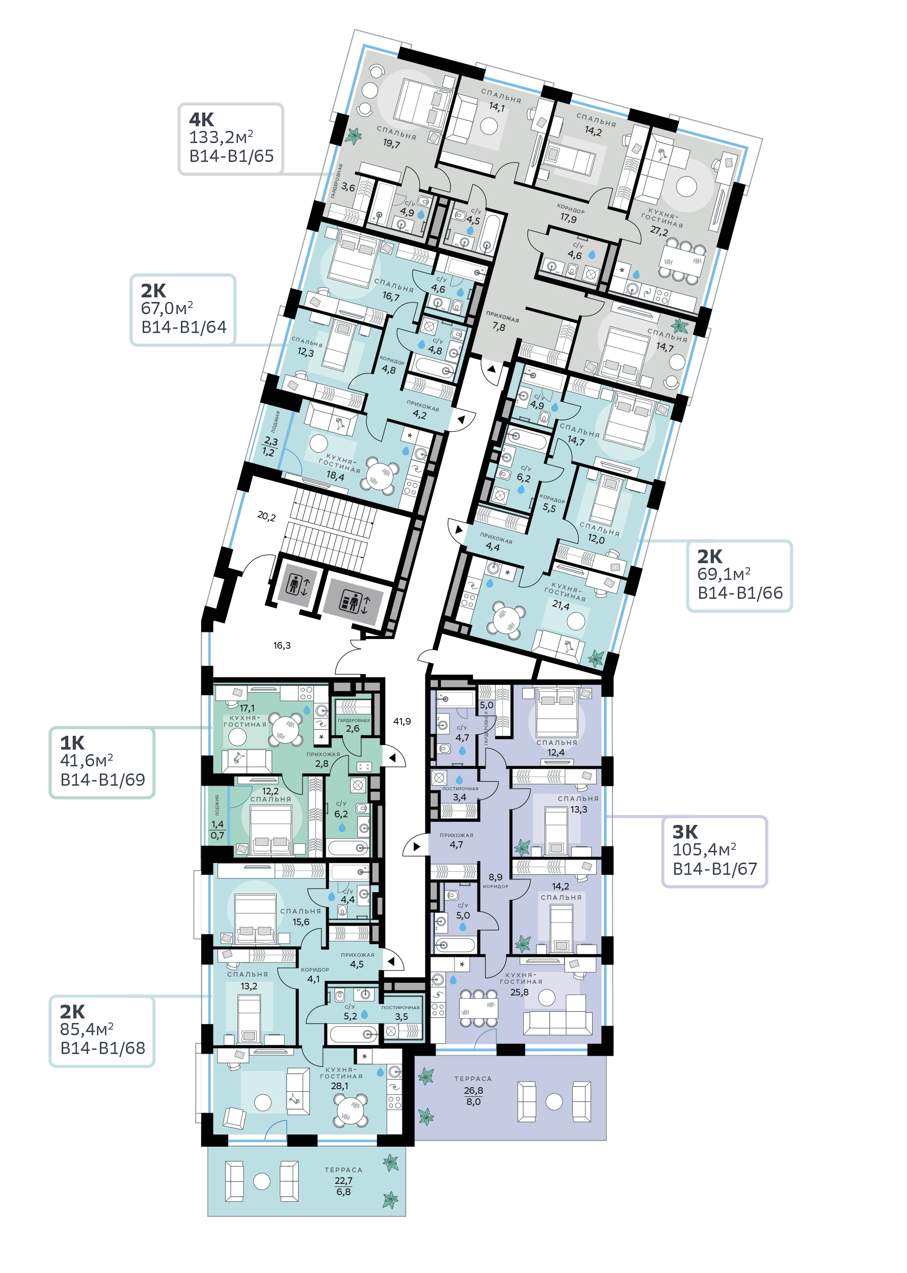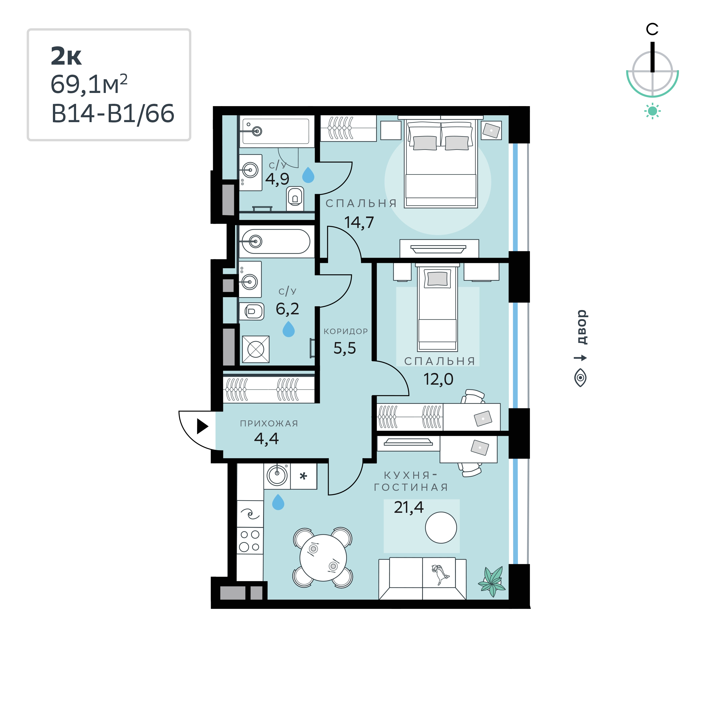 В продаже 2к квартира с чистовой отделкой общей площадью 69,1 кв. м. Квартира расположена на 9 этаже 10-этажной секции корпуса Balanced в новом Рублёво-Архангельском районе Москвы, который строит Сбер.В архитектуре квартала, разработанной итальянским бюро, нашла отражение природная палитра. Для двух корпусов выбраны небесно-голубой и травянистый зелёный оттенки фасадов. Яркими акцентами служат декоративные металлические рамы окон и эркеров. Наслаждайтесь пейзажем и невероятными закатами из окон, встречайте рассветы на уютных лоджиях и балконах, устраивайте чаепития с соседями на общественных террасах. Выходите на пробежку или просто гуляйте рядом с кварталом: В14 примыкает к главному парку СберСити, а до набережной — 3 минуты пешком. В квартале — уютные дворы без машин с обилием крупномерных растений и кустарников, многолетних и сезонных цветов, детские площадки и тихие зоны отдыха.