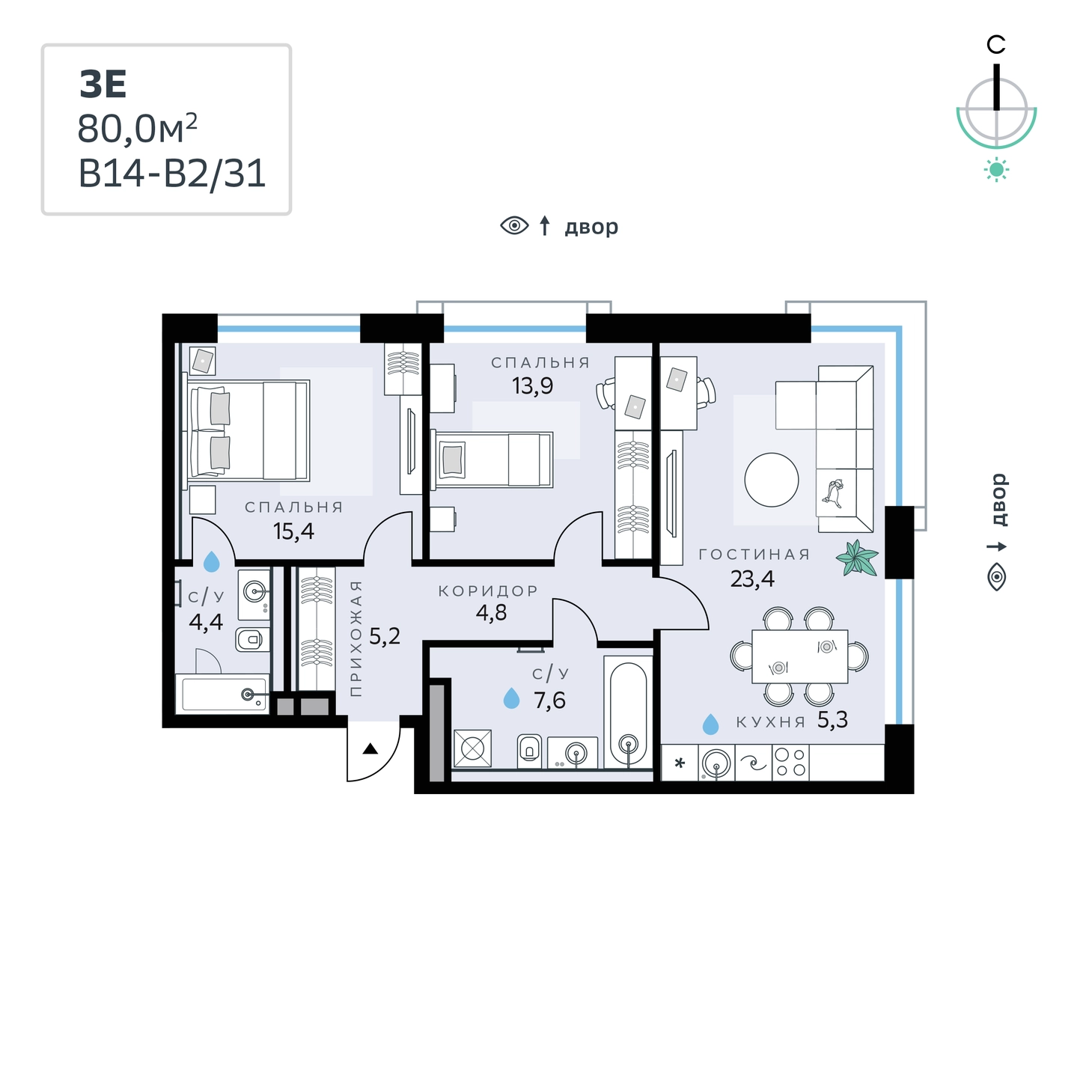 В продаже 3к квартира общей площадью 80 кв. м. Квартира расположена на 2 этаже 9-этажной секции корпуса Balanced в новом Рублёво-Архангельском районе Москвы, который строит Сбер. В архитектуре квартала, разработанной итальянским бюро, нашла отражение природная палитра. Для фасадов корпуса выбран травянистый зелёный оттенок. Яркими акцентами служат декоративные металлические рамы окон и эркеров. Наслаждайтесь речным пейзажем и невероятными закатами из окон, встречайте рассветы на уютных лоджиях и балконах, устраивайте чаепития с соседями на общественных террасах. Выходите на пробежку или просто гуляйте рядом с кварталом: В14 примыкает к главному парку СберСити, а до набережной — 3 минуты пешком. В квартале — уютные дворы без машин с обилием крупномерных растений и кустарников, многолетних и сезонных цветов, детские площадки и тихие зоны отдыха. Дом возводится по технологии монолитного строительства. Отделка фасадов выполнена из терракотовых и алюминиевых композитных панелей. Квартира сдается без отделки. Установлены двухкамерные стеклопакеты с алюминиевым профилем и скрытыми створками. Высота потолков от 2,9 метров. В доме расположены: - уютное лобби, - лапомойка, - колясочная и велосипедная комната на первом этаже, - подземный паркинг. Безопасность обеспечивают высокотехнологичная система распознавания лиц и камеры в общественных пространствах. СберСити в Рублёво-Архангельском – это новый жилой и деловой район на западе Москвы, в одном из самых экологически чистых и престижных мест столицы. Это первая в России и крупнейшая в мире инновационная городская среда, созданная по международным стандартам зелёного проектирования. СберСити – это новации в тепло- и энергоснабжении, вакуумное мусороудаление, тестирование зелёных технологий, системы умный дом, а в дальнейшем — внедрение искусственного интеллекта в ЖКХ и управление домом. В центре внимания мегапроекта – создание комфортной среды на основе интересов, потребностей и эмоций жителей. Активная фаза строительства проекта началась в 2021 году. Заселение жителей первых корпусов началось летом 2024 года. Жители нового района получат новое качество и образ жизни. Общая площадь проекта составляет 461 га, жилых строений свыше 2,5 млн кв. м и 815 тысяч кв. м многофункционального офисного пространства. Будет построено 8 школ, 16 детских садов и 2 поликлиники. В СберСити будут проживать более 65 тысяч жителей, а работать свыше 70 тысяч человек. Развитием территории — от создания мастер-плана и проекта планировки до строительства всей инфраструктуры занимается АО «Рублево-Архангельское», входит в группу Сбер. СберСити — это место, где хочется жить, работать и растить детей! Переезжайте в СберСити!О застройщике