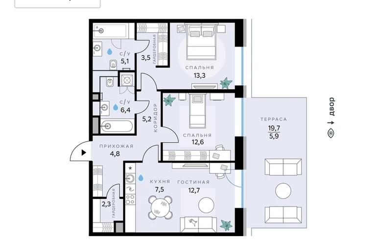 В продаже 3к квартира с чистовой отделкой общей площадью 79,3 кв. м. Квартира расположена на 1 этаже 10-этажной секции корпуса Optimum в новом Рублёво-Архангельском районе Москвы, который строит Сбер.В архитектуре квартала, разработанной итальянским бюро, нашла отражение природная палитра. Здание выполнено в тёплой гамме: фасады отличает геометричная сетка из объёмных элементов светло-бежевого оттенка, за которыми скрываются вставки с рисунком под древесину. Наслаждайтесь пейзажем и невероятными закатами из окон, встречайте рассветы на уютных лоджиях и балконах, устраивайте чаепития с соседями на общественных террасах. Выходите на пробежку или просто гуляйте рядом с кварталом: В14 примыкает к главному парку СберСити, а до набережной — 3 минуты пешком. В квартале — уютные дворы без машин с обилием крупномерных растений и кустарников, многолетних и сезонных цветов, детские площадки и тихие зоны отдыха.