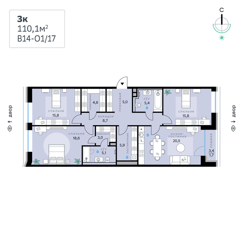 В продаже 3к квартира с чистовой отделкой общей площадью 110,1 кв. м. Квартира расположена на 3 этаже 10-этажной секции корпуса Optimum в новом Рублёво-Архангельском районе Москвы, который строит Сбер.В архитектуре квартала, разработанной итальянским бюро, нашла отражение природная палитра. Здание выполнено в тёплой гамме: фасады отличает геометричная сетка из объёмных элементов светло-бежевого оттенка, за которыми скрываются вставки с рисунком под древесину. Наслаждайтесь пейзажем и невероятными закатами из окон, встречайте рассветы на уютных лоджиях и балконах, устраивайте чаепития с соседями на общественных террасах. Выходите на пробежку или просто гуляйте рядом с кварталом: В14 примыкает к главному парку СберСити, а до набережной — 3 минуты пешком. В квартале — уютные дворы без машин с обилием крупномерных растений и кустарников, многолетних и сезонных цветов, детские площадки и тихие зоны отдыха.