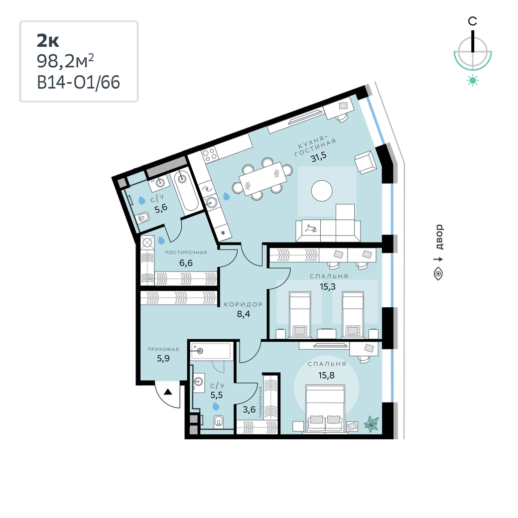 В продаже 2к квартира с чистовой отделкой общей площадью 98,2 кв. м. Квартира расположена на 2 этаже 11-этажной секции корпуса Optimum в новом Рублёво-Архангельском районе Москвы, который строит Сбер.В архитектуре квартала, разработанной итальянским бюро, нашла отражение природная палитра. Здание выполнено в тёплой гамме: фасады отличает геометричная сетка из объёмных элементов светло-бежевого оттенка, за которыми скрываются вставки с рисунком под древесину. Наслаждайтесь пейзажем и невероятными закатами из окон, встречайте рассветы на уютных лоджиях и балконах, устраивайте чаепития с соседями на общественных террасах. Выходите на пробежку или просто гуляйте рядом с кварталом: В14 примыкает к главному парку СберСити, а до набережной — 3 минуты пешком. В квартале — уютные дворы без машин с обилием крупномерных растений и кустарников, многолетних и сезонных цветов, детские площадки и тихие зоны отдыха.