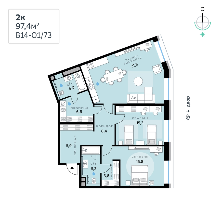 В продаже 2к квартира с чистовой отделкой общей площадью 97,4 кв. м. Квартира расположена на 3 этаже 11-этажной секции корпуса Optimum в новом Рублёво-Архангельском районе Москвы, который строит Сбер.В архитектуре квартала, разработанной итальянским бюро, нашла отражение природная палитра. Здание выполнено в тёплой гамме: фасады отличает геометричная сетка из объёмных элементов светло-бежевого оттенка, за которыми скрываются вставки с рисунком под древесину. Наслаждайтесь пейзажем и невероятными закатами из окон, встречайте рассветы на уютных лоджиях и балконах, устраивайте чаепития с соседями на общественных террасах. Выходите на пробежку или просто гуляйте рядом с кварталом: В14 примыкает к главному парку СберСити, а до набережной — 3 минуты пешком. В квартале — уютные дворы без машин с обилием крупномерных растений и кустарников, многолетних и сезонных цветов, детские площадки и тихие зоны отдыха.