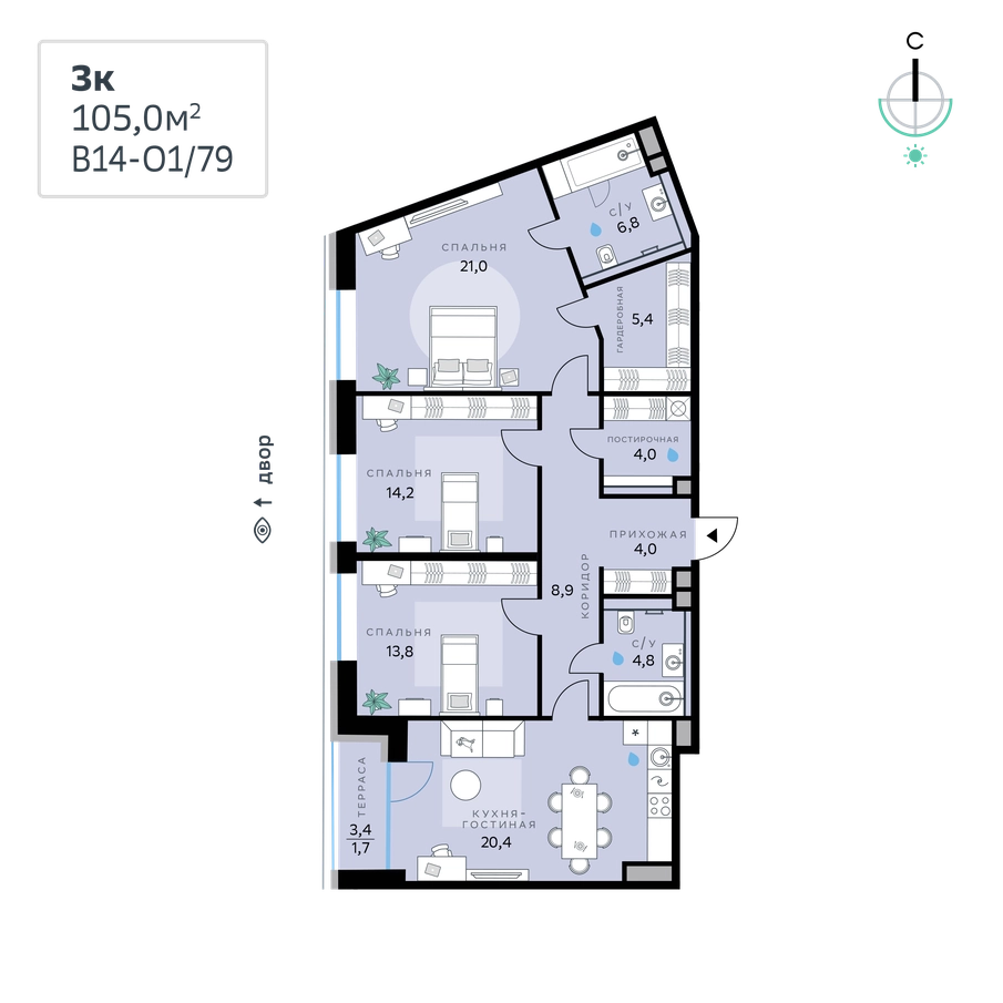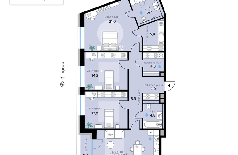 В продаже 3к квартира с чистовой отделкой общей площадью 105 кв. м. Квартира расположена на 4 этаже 11-этажной секции корпуса Optimum в новом Рублёво-Архангельском районе Москвы, который строит Сбер.В архитектуре квартала, разработанной итальянским бюро, нашла отражение природная палитра. Здание выполнено в тёплой гамме: фасады отличает геометричная сетка из объёмных элементов светло-бежевого оттенка, за которыми скрываются вставки с рисунком под древесину. Наслаждайтесь пейзажем и невероятными закатами из окон, встречайте рассветы на уютных лоджиях и балконах, устраивайте чаепития с соседями на общественных террасах. Выходите на пробежку или просто гуляйте рядом с кварталом: В14 примыкает к главному парку СберСити, а до набережной — 3 минуты пешком. В квартале — уютные дворы без машин с обилием крупномерных растений и кустарников, многолетних и сезонных цветов, детские площадки и тихие зоны отдыха.