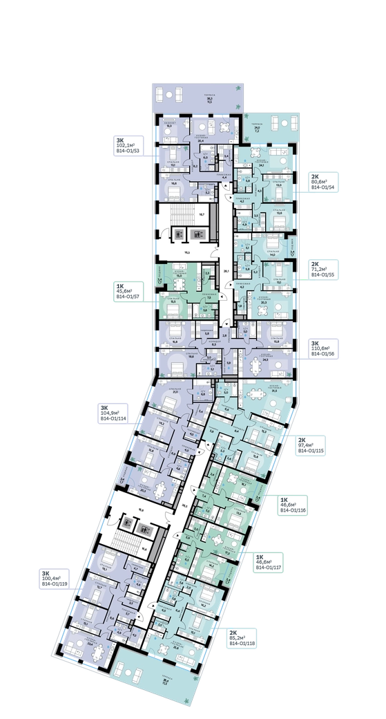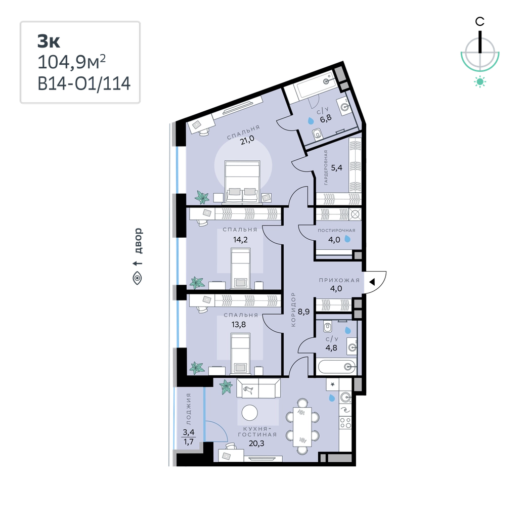 В продаже 3к квартира с чистовой отделкой общей площадью 104,9 кв. м. Квартира расположена на 9 этаже 11-этажной секции корпуса Optimum в новом Рублёво-Архангельском районе Москвы, который строит Сбер.В архитектуре квартала, разработанной итальянским бюро, нашла отражение природная палитра. Здание выполнено в тёплой гамме: фасады отличает геометричная сетка из объёмных элементов светло-бежевого оттенка, за которыми скрываются вставки с рисунком под древесину. Наслаждайтесь пейзажем и невероятными закатами из окон, встречайте рассветы на уютных лоджиях и балконах, устраивайте чаепития с соседями на общественных террасах. Выходите на пробежку или просто гуляйте рядом с кварталом: В14 примыкает к главному парку СберСити, а до набережной — 3 минуты пешком. В квартале — уютные дворы без машин с обилием крупномерных растений и кустарников, многолетних и сезонных цветов, детские площадки и тихие зоны отдыха.