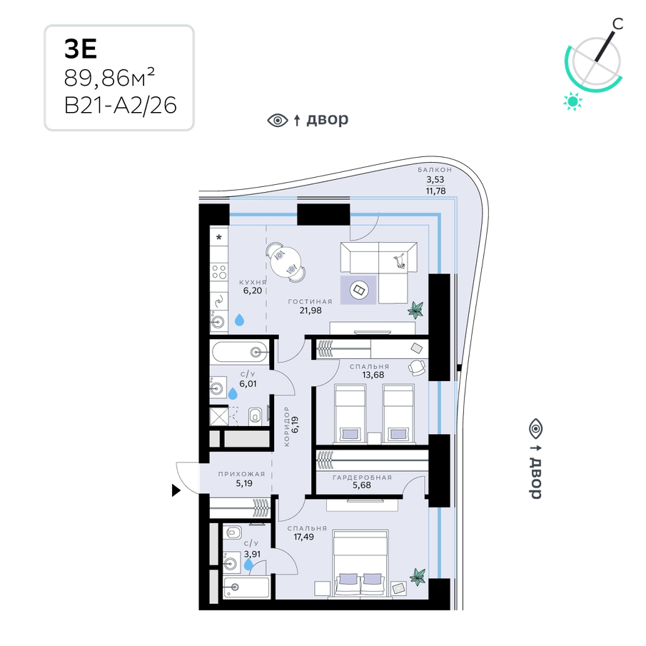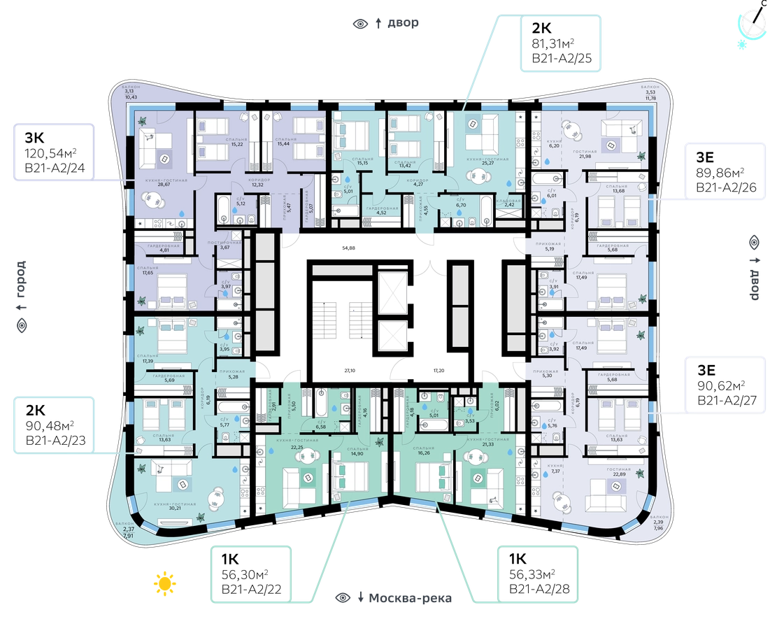 В продаже 3к квартира общей площадью 89,86кв. м. Квартира расположена на 5 этаже 13-этажной секции корпуса Advanced в новом Рублёво-Архангельском районе Москвы, который строит Сбер. Дом находится на второй береговой линии Москвы-реки.Сочетание элегантной архитектуры от ведущего итальянского бюро и передовых технологий на всех уровнях: от квартиры до инфраструктуры района. Отделка фасадов корпуса Advanced выполнена из природного камня, глазурованной плитки и алюминия. В квартирах предустановлена система «умный дом»: комплекс систем, связывающий квартиру, дом и прилегающую территорию. Жильцы могут управлять климатом в помещениях, выбирая комфортную температуру, а также управлять освещением по заданным параметрам.