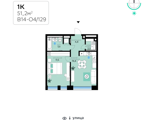 • Общая площадь51.20