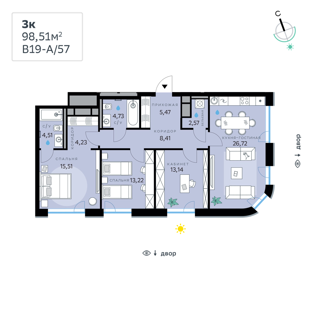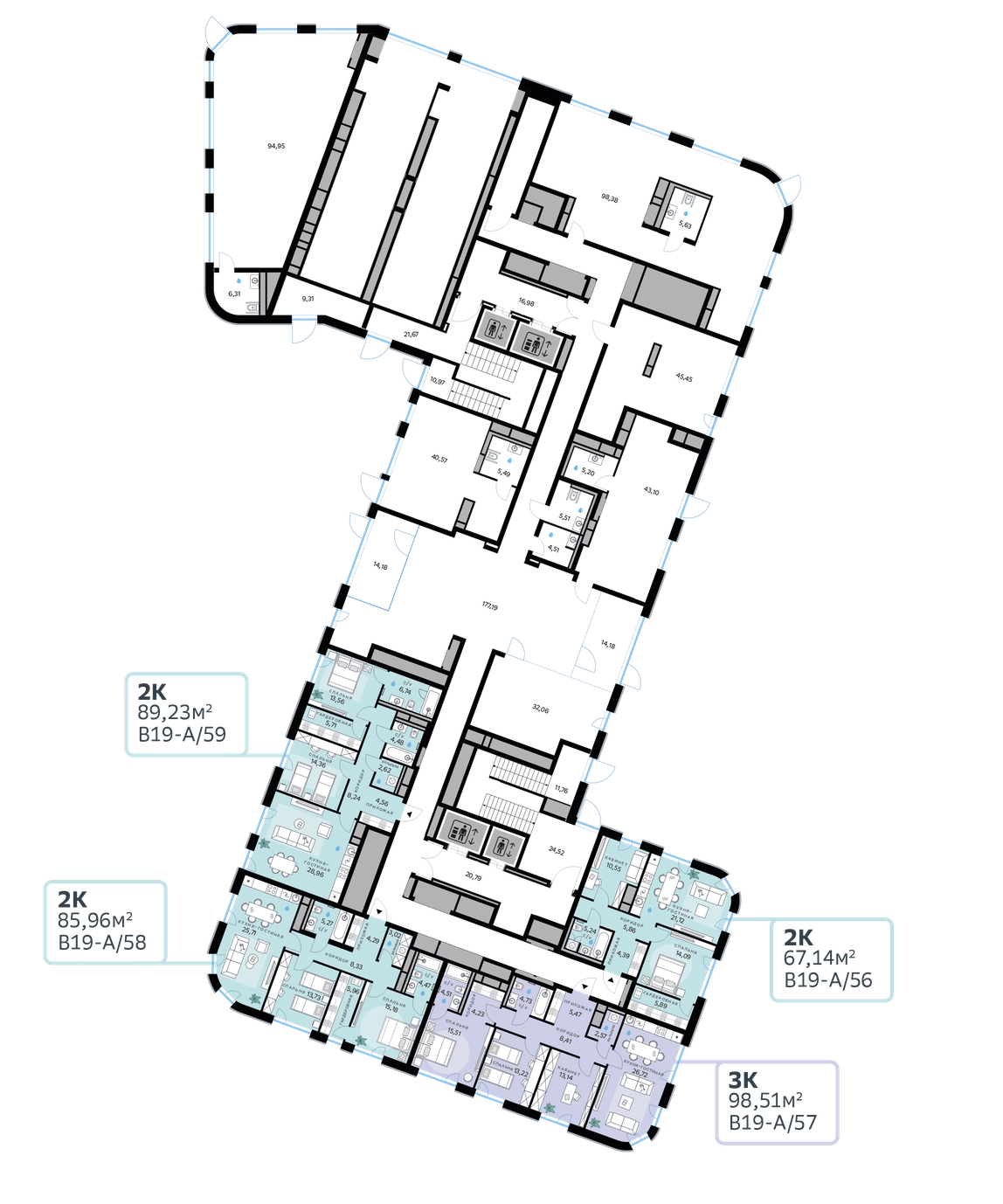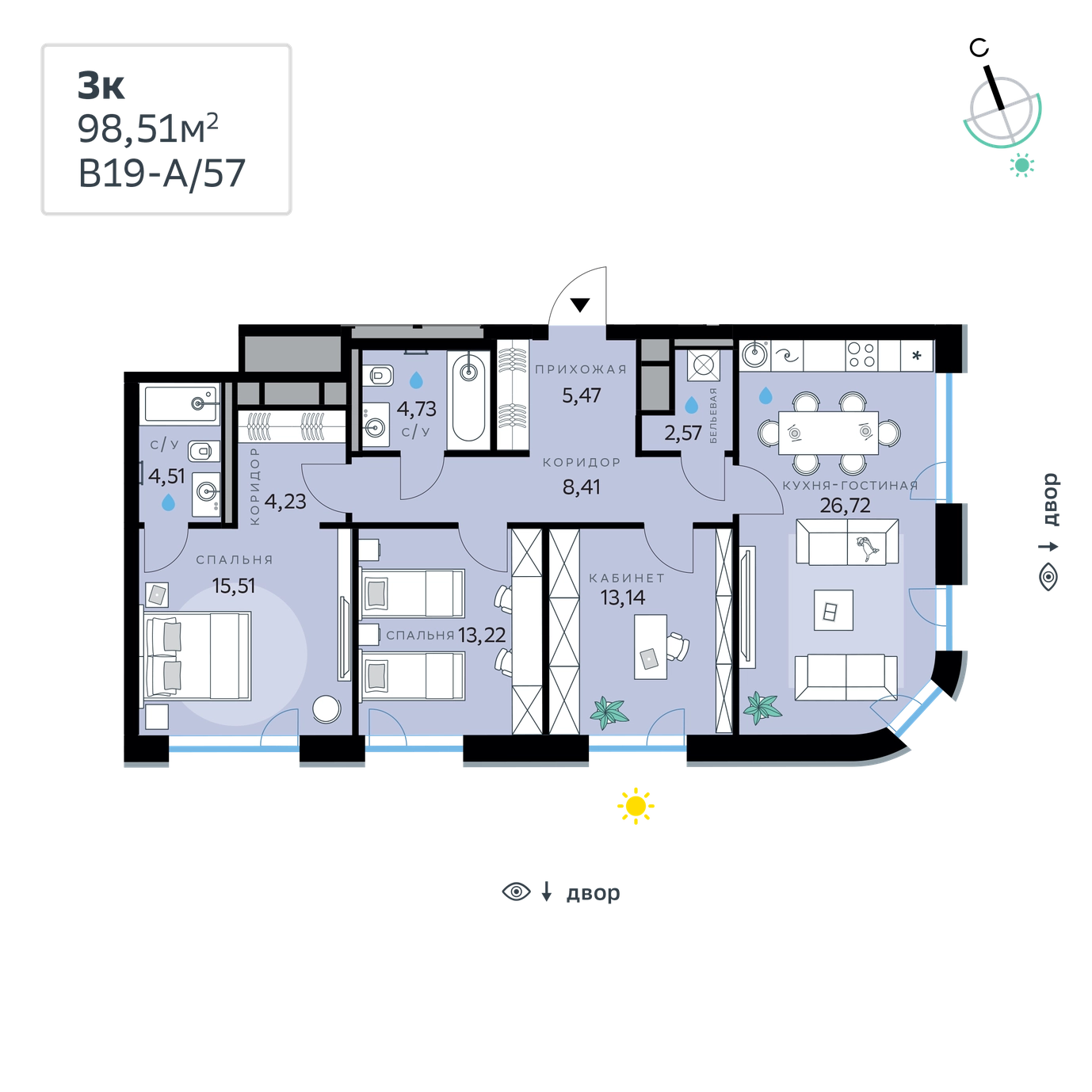 В продаже — трехкомнатная квартира, общей площадью 98,51 кв. м. Квартира расположена на первом этаже двенадцатиэтажной секции корпуса класса Адвансд в новом районе СберСити, который строит Сбер. Дом находится на второй береговой линии Москвы-реки.Отделка фасадов корпуса класса Адвансд выполнена из природного камня, глазурованной плитки и алюминия. Дом возводится по технологии монолитного строительства. В квартире проведены работы по улучшению шумоизоляции, установлены двухкамерные стеклопакеты с низкоэмиссионными стёклами, минимизирующими теплопотери. Высота окон — от 3 до 3,25 м. Квартира сдаётся без отделки. Высота потолков — от 3,3 до 3,5 м.