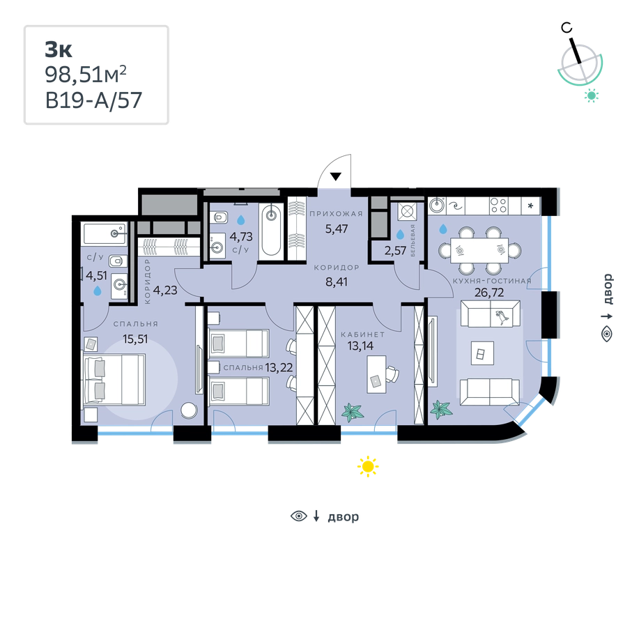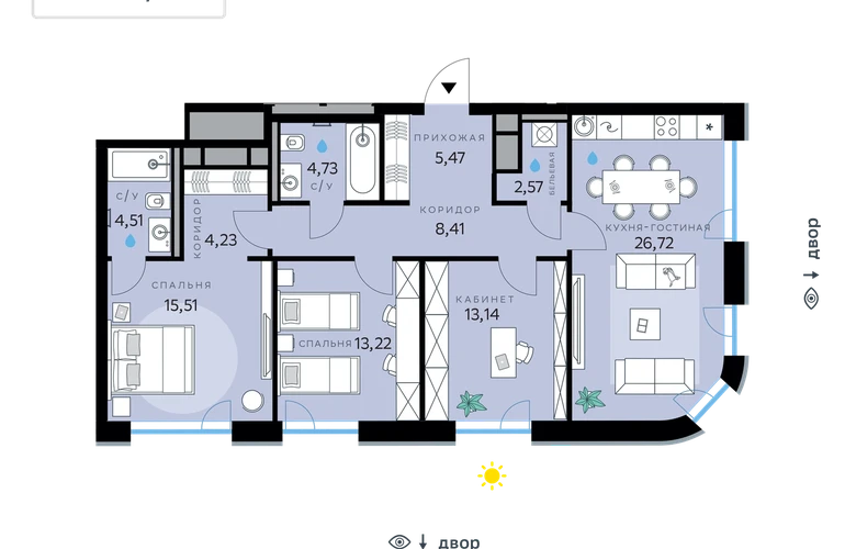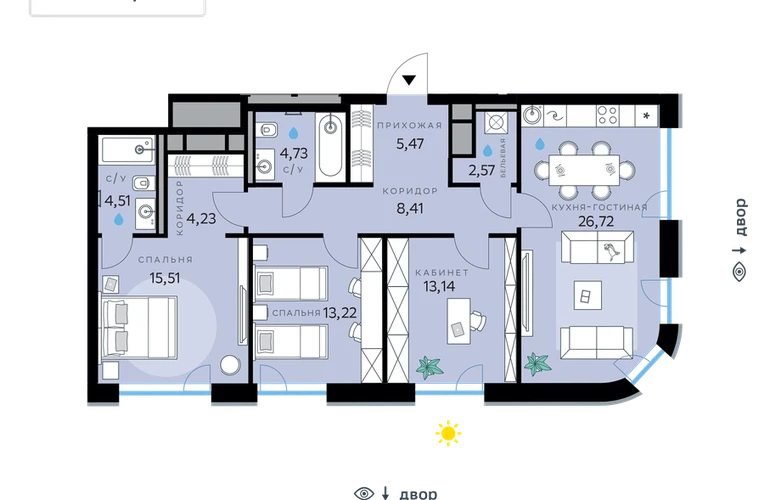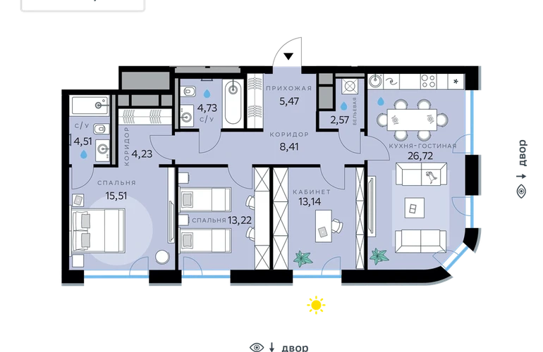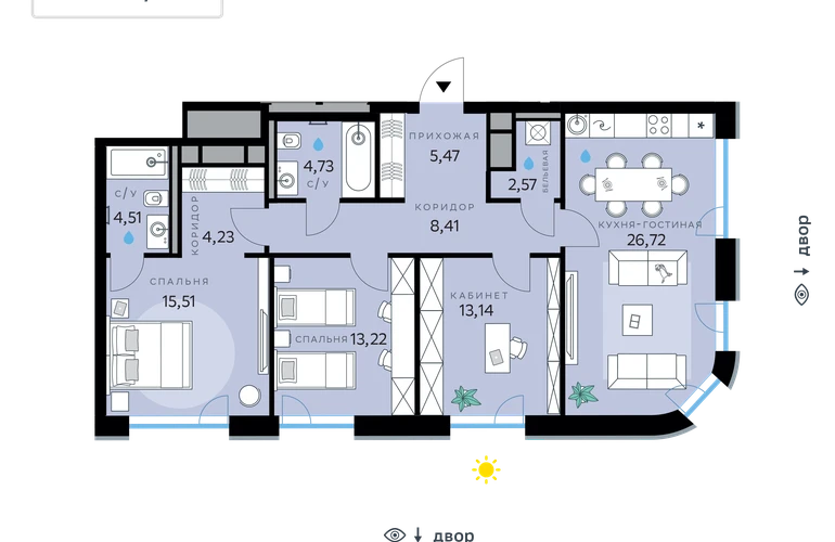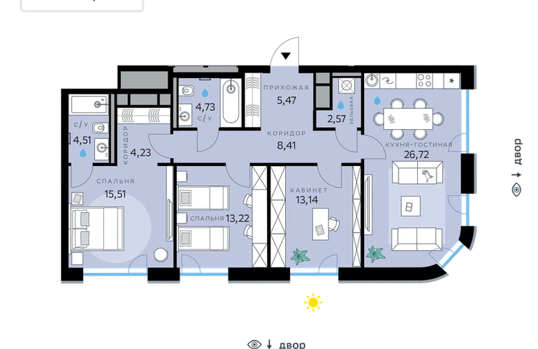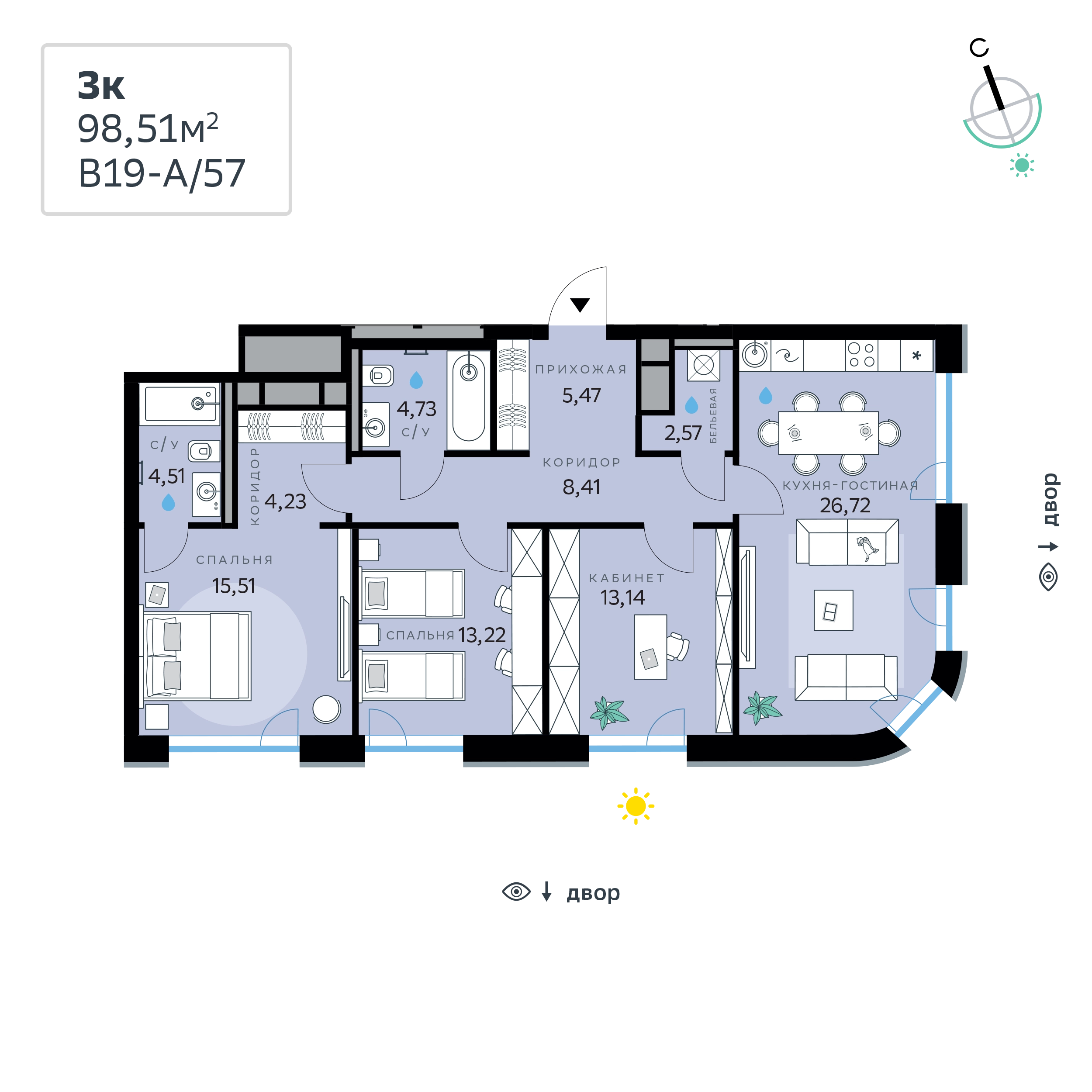 В продаже — трехкомнатная квартира, общей площадью 98,51 кв. м. Квартира расположена на первом этаже двенадцатиэтажной секции корпуса класса Адвансд в новом районе СберСити, который строит Сбер. Дом находится на второй береговой линии Москвы-реки.Отделка фасадов корпуса класса Адвансд выполнена из природного камня, глазурованной плитки и алюминия. Дом возводится по технологии монолитного строительства. В квартире проведены работы по улучшению шумоизоляции, установлены двухкамерные стеклопакеты с низкоэмиссионными стёклами, минимизирующими теплопотери. Высота окон — от 3 до 3,25 м. Квартира сдаётся без отделки. Высота потолков — от 3,3 до 3,5 м.