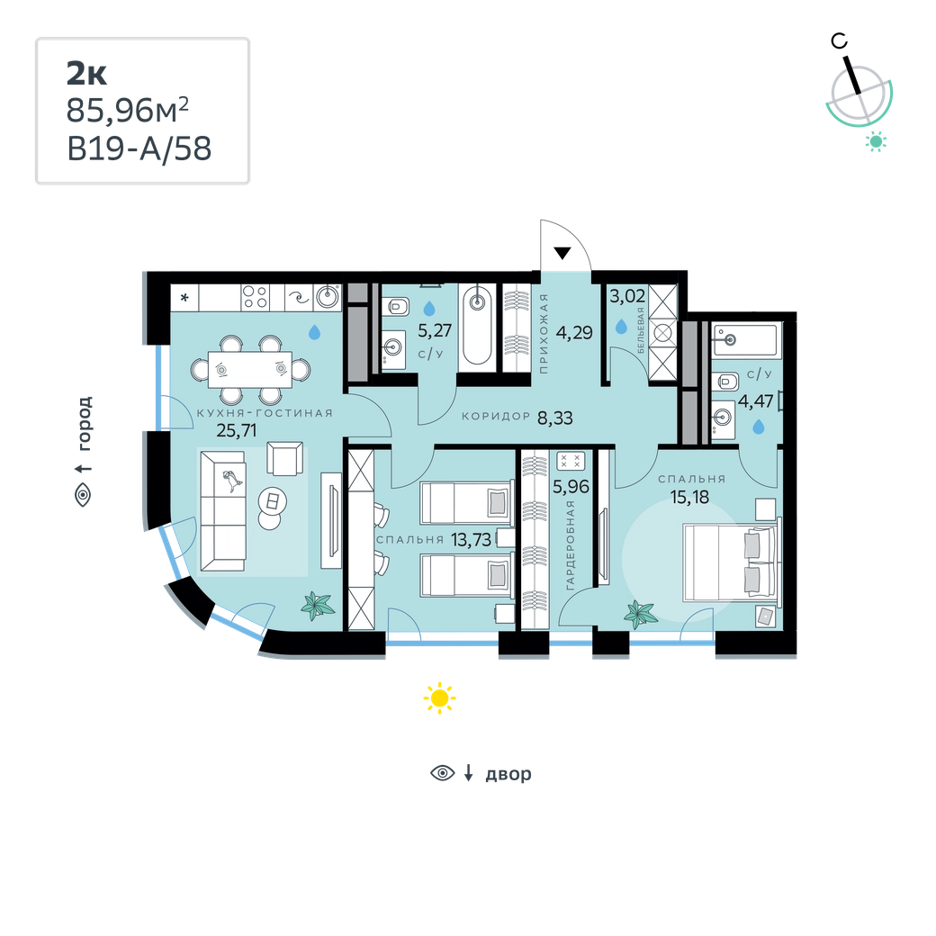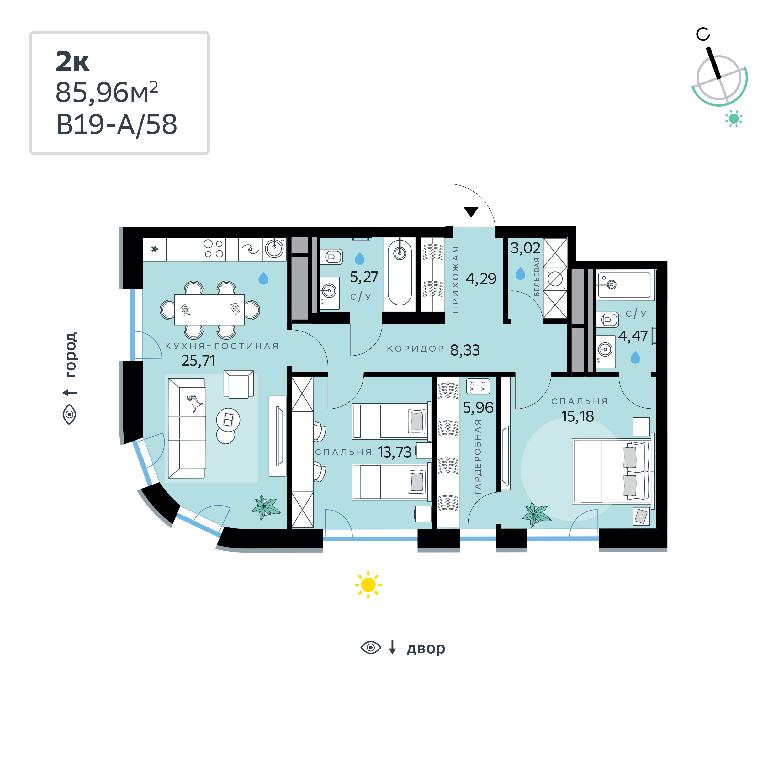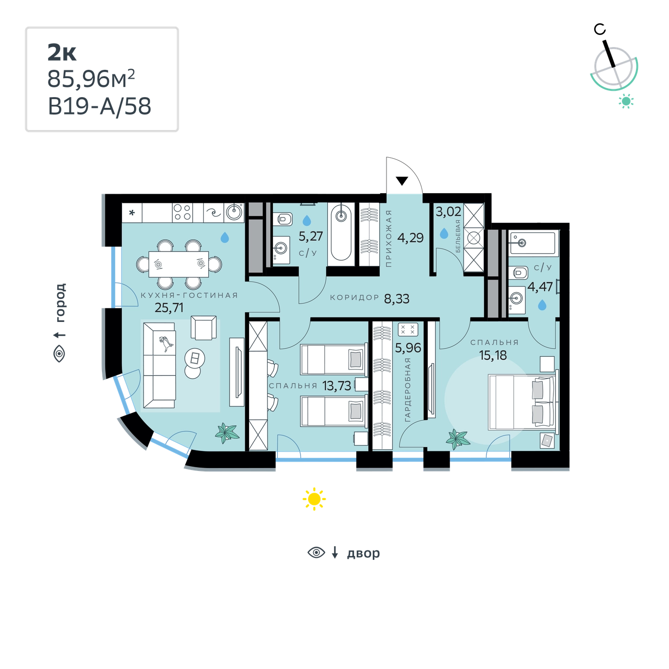 В продаже 2к квартира общей площадью 85,96 кв. м. Квартира расположена на 1 этаже 12-этажной секции корпуса Advanced в новом Рублёво-Архангельском районе Москвы, который строит Сбер. Дом находится на второй береговой линии Москвы-реки.Отделка фасадов корпуса Advanced выполнена из природного камня, глазурованной плитки и алюминия. Дом возводится по технологии монолитного строительства. В квартире проведены работы по улучшению шумоизоляции, установлены двухкамерные стеклопакеты с низкоэмиссионными стеклами, позволяющими минимизировать теплопотери. Высота окон 3 – 3,25 метра. Квартира сдается без отделки. Высота потолков составляет 3,3 – 3,5 метра.