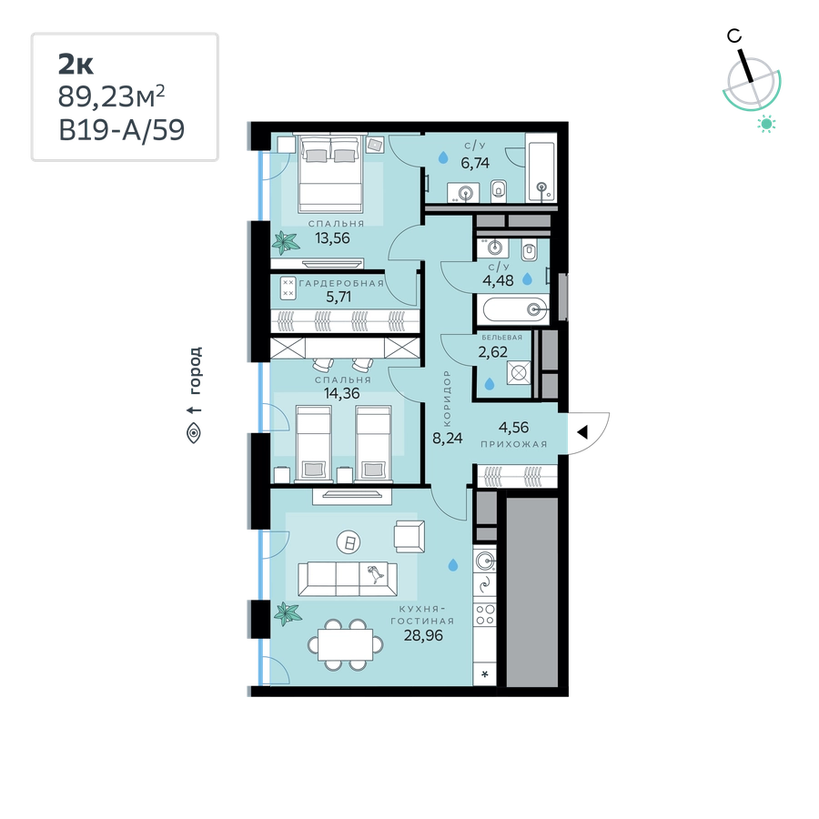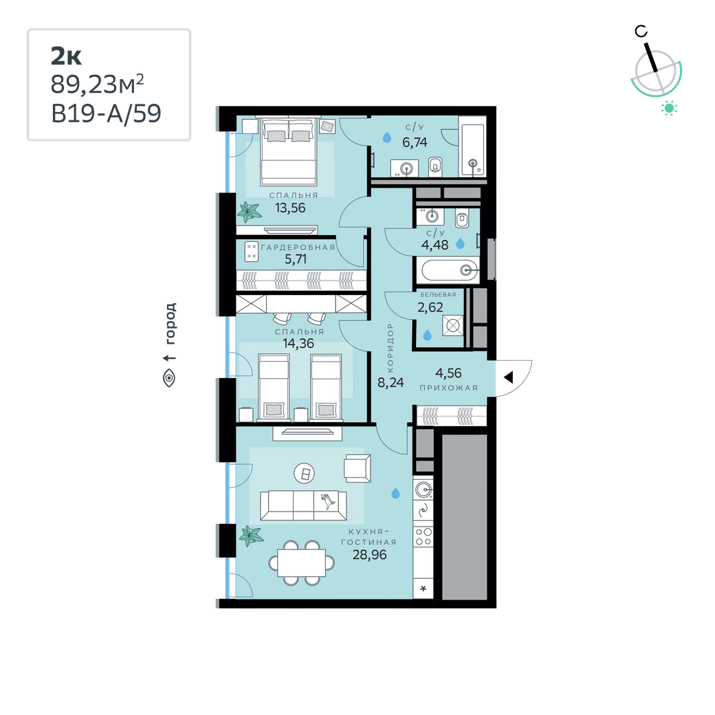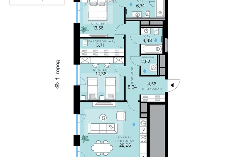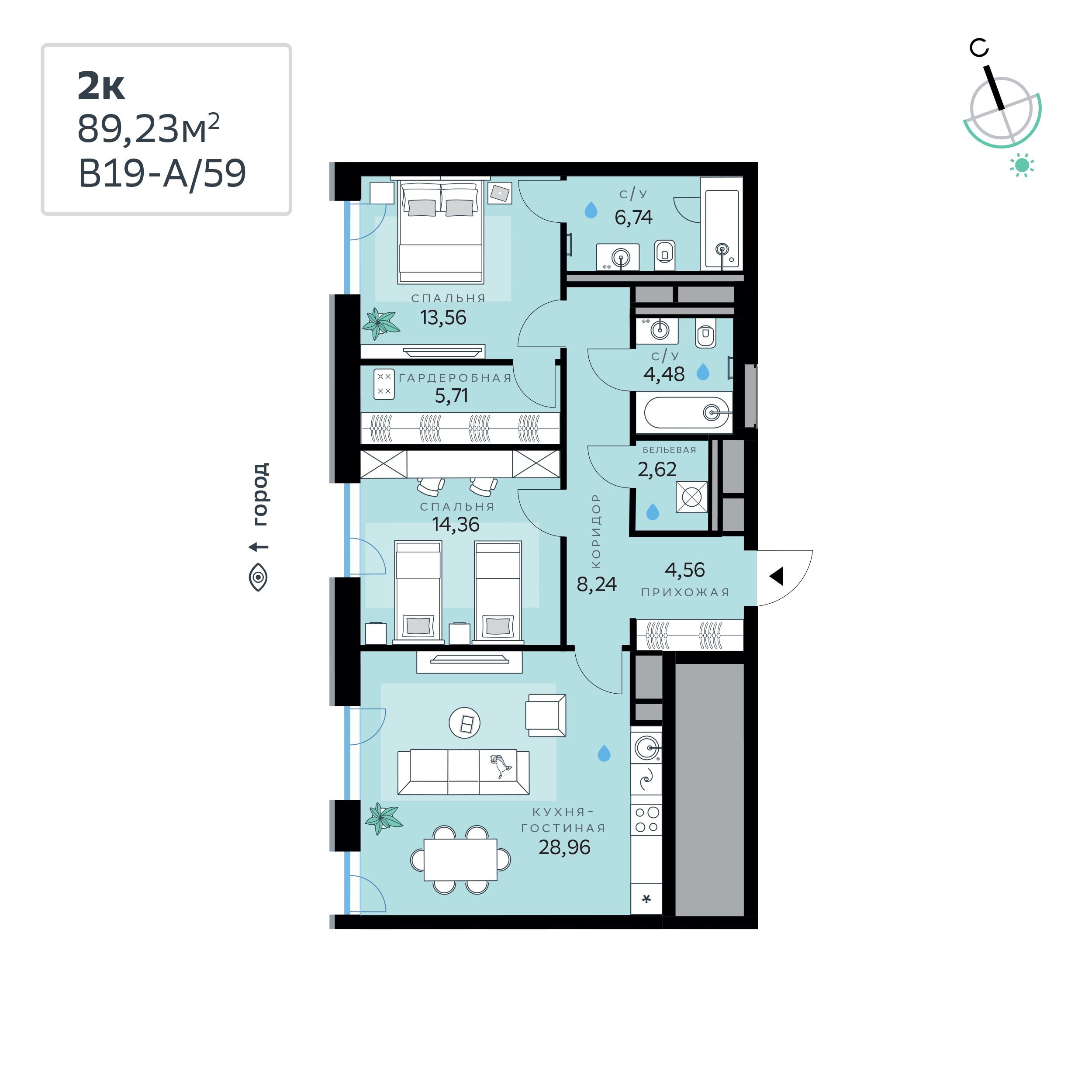 В продаже — двухкомнатная квартира, общей площадью 89,23 кв. м. Квартира расположена на первом этаже двенадцатиэтажной секции корпуса класса Адвансд в новом районе СберСити, который строит Сбер. Дом находится на второй береговой линии Москвы-реки.Отделка фасадов корпуса класса Адвансд выполнена из природного камня, глазурованной плитки и алюминия. Дом возводится по технологии монолитного строительства. В квартире проведены работы по улучшению шумоизоляции, установлены двухкамерные стеклопакеты с низкоэмиссионными стёклами, минимизирующими теплопотери. Высота окон — от 3 до 3,25 м. Квартира сдаётся без отделки. Высота потолков — от 3,3 до 3,5 м.