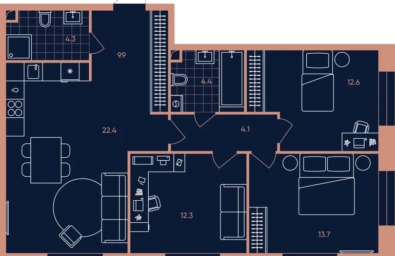 4-ком, 83.7 кв.м., 8/27эт.