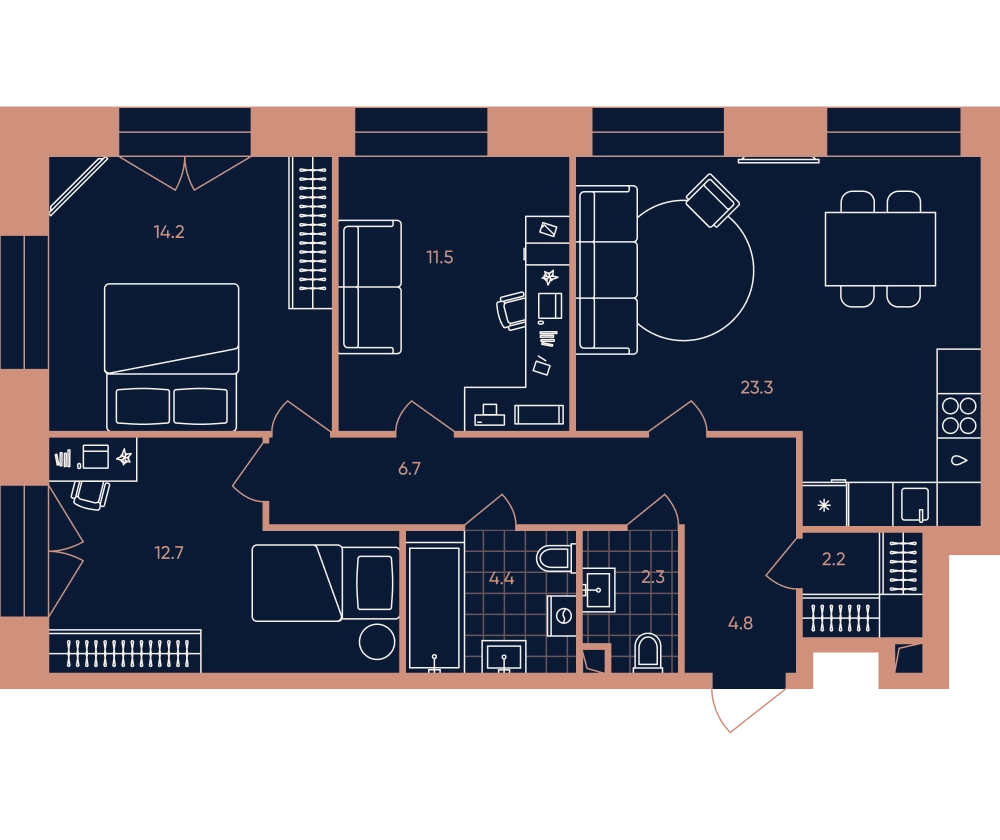 3-ком, 82.1 кв.м., 6/33эт.