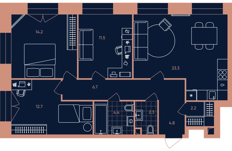 3-ком, 82.1 кв.м., 6/33эт.
