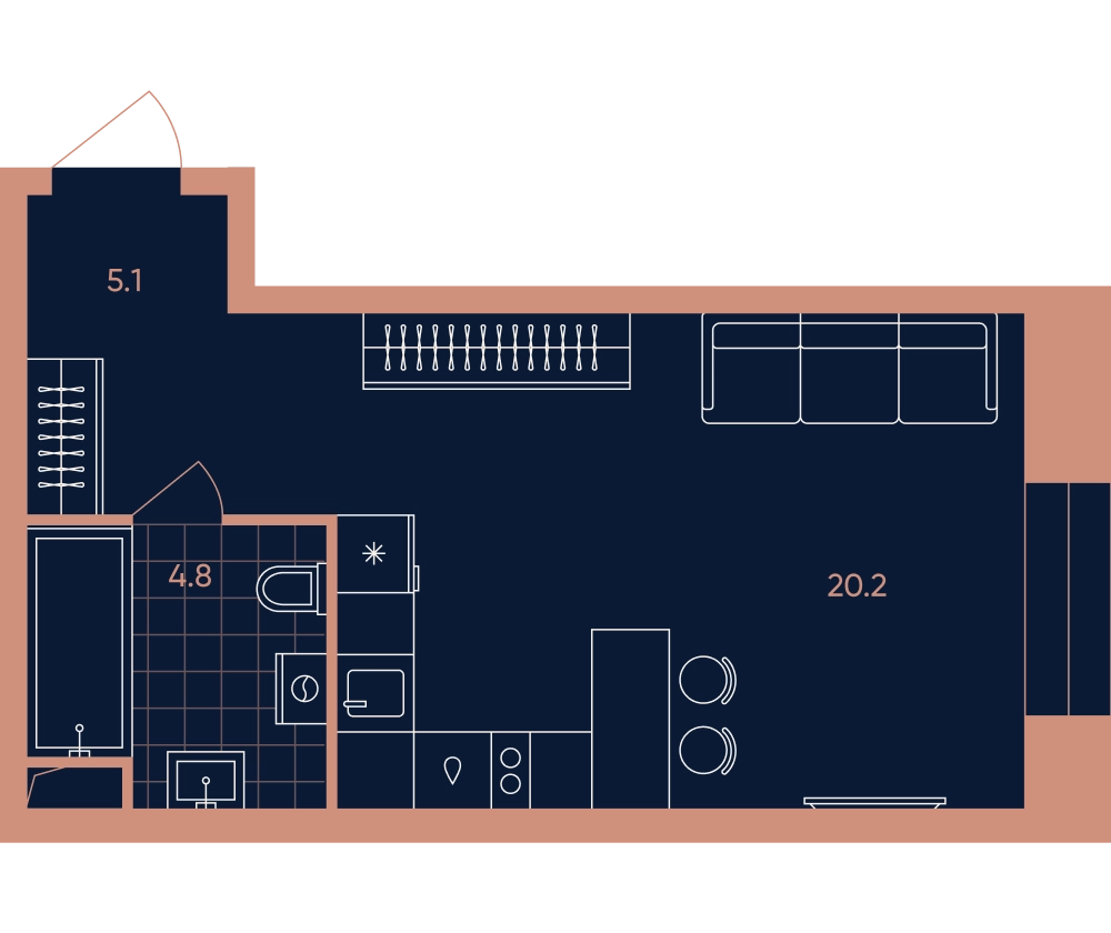 1-ком, 30.1 кв.м., 6/33эт.