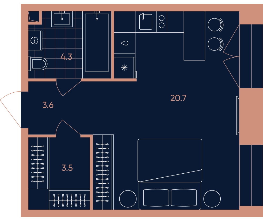 1-ком, 32.1 кв.м., 6/33эт.