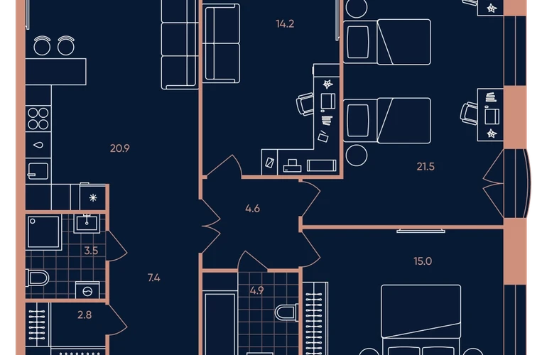 4-ком, 94.8 кв.м., 5/27эт.